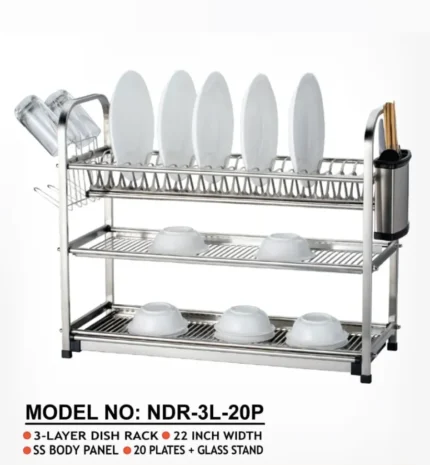 Stainless Steel Dish Rack 3 Layer and 20plates NDR-3L-20P | MNK SHOP