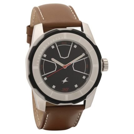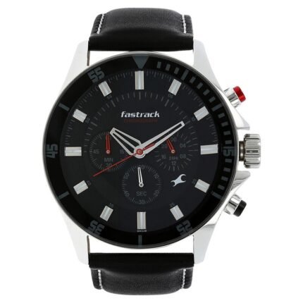 Fastrack NP3099SL04 Quartz Analog Black Dial Leather Strap Watch | MNK SHOP