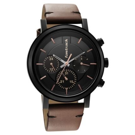 Fastrack 3270WL01 Fleek Quartz Multifunction Black Dial Leather Strap Watch | MNK SHOP