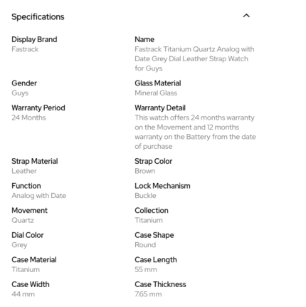 Fastrack NN3205TL02 Titanium Quartz Analog Date Grey Dial Leather Strap Watch | MNK SHOP