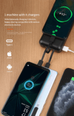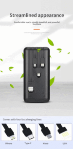 • 4-in-1 Built-in Charging Cables: Lightning, Micro USB, Type-C, and USB-A