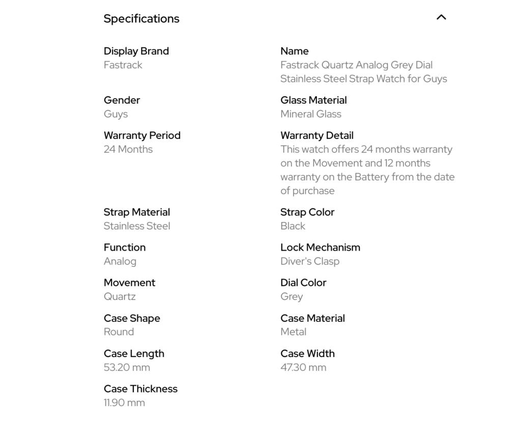 • Warranty: This watch offers 24 months warranty on the Machine and 12 months warranty on the Battery from the date of purchase