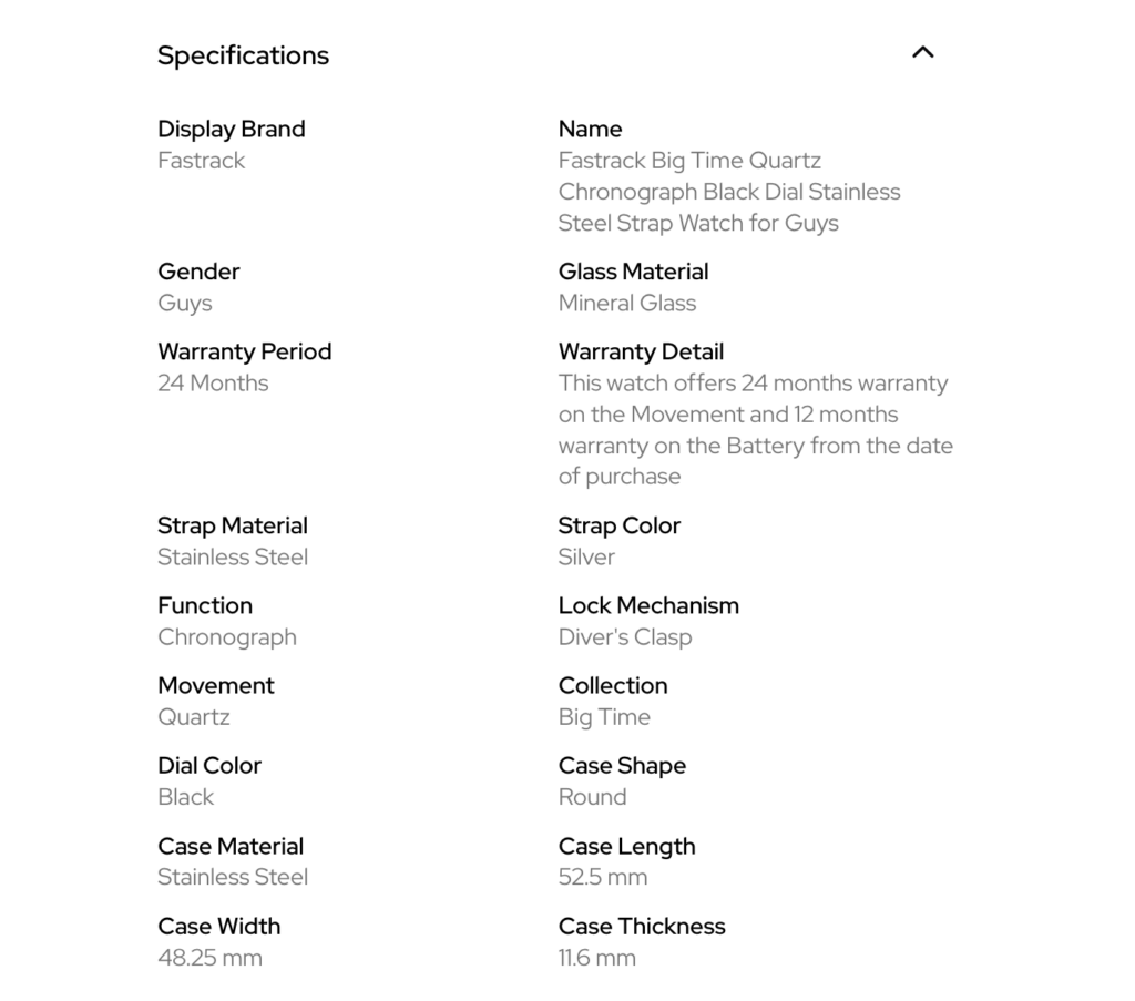 • Warranty: This watch offers 24 months warranty on the Machine and 12 months warranty on the Battery from the date of purchase