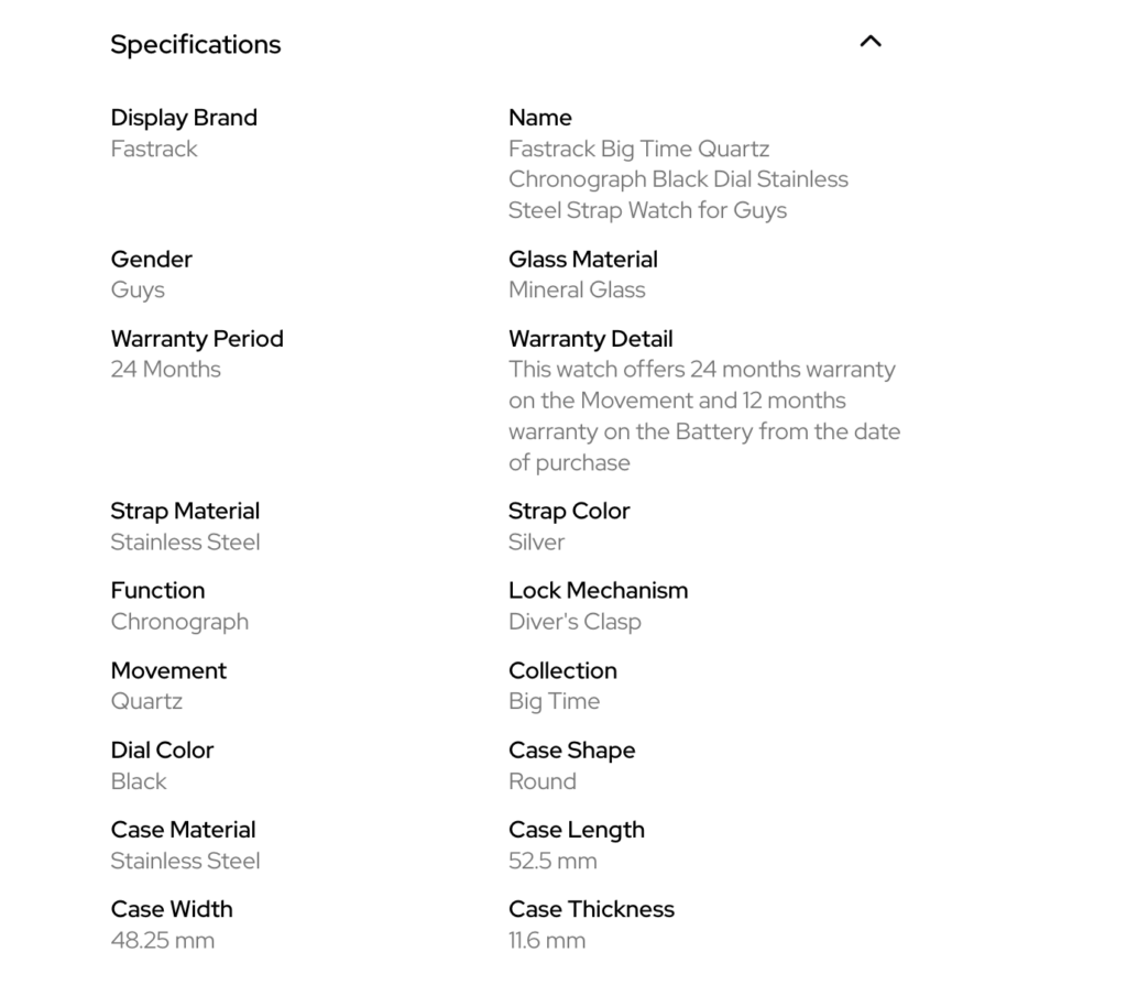 • Warranty: This watch offers 24 months warranty on the Machine and 12 months warranty on the Battery from the date of purchase