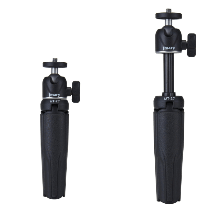 The Jmary MT-27 mini Tripod Stand With Mobile Holder is a lightweight and portable tripod that is perfect for smartphones and small cameras. It is made of aluminum and ABS plastic, and can be folded up to just 16cm tall, making it easy to carry in your pocket or bag.